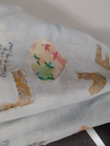 - Turn the denim inside out and sew or glue each patch onto the denim. Helpful hint: you can buy permanent fabric tape and cut them to size for your fabric patches.