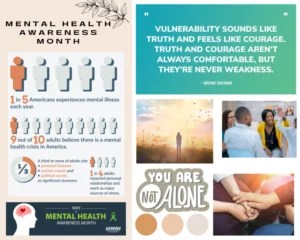 Mental Health Awareness month, what a beautiful way to bring awareness to a very important topic. Growing up I considered mental health to be very extreme mental health disorders. For example, depression/suicide, substance abuse/addiction, or diagnosis/personality disorders. Also, feeling statements that were commonly heard and used were simply happy, mad, and sad. Mental health is so much more complex than the ones I listed. I now believe those are the extremes, because mental health hasn’t/hadn’t ever been addressed. Navigating something within ourselves, without the knowledge and words, leads to a recipe for disaster.