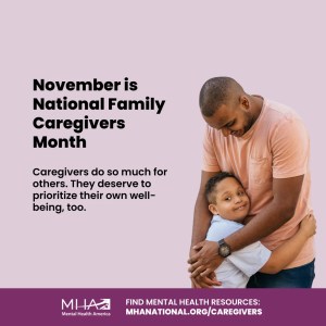 An email I received from Mental Health America (MHA) states, “November is National Family Caregivers Month — a time to celebrate the incredible dedication of family members who provide essential care for loved ones managing health challenges, including mental health conditions.” As a parent caring for a child with mental health conditions, I often felt blamed, overlooked, and unappreciated. I also judged myself and struggled with constant regret in my choices as a parent. As I began practicing self-care, I was slowly able to appreciate my dedication to my child and their health. I recognized I was doing the best I could, which was all I could ask of myself. As my wellness improved so did my ability to respond instead of reacting, my compassion grew, I was better at setting healthy boundaries, and I had more to give without feeling resentful.